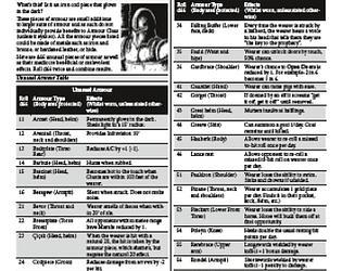 A d66 table of unique and unusual pieces of armour pieces for Swords & Wizardry and Old School Essentials