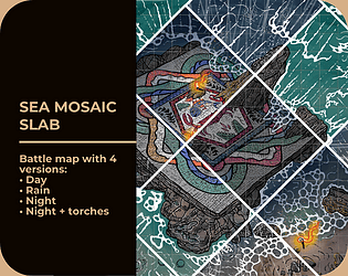 A hand-drawn RPG battlemap of ancient mosaic at the sea