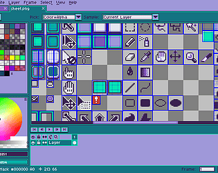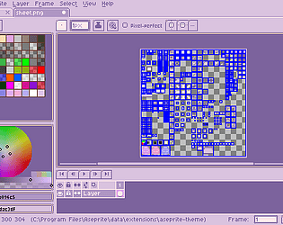 An updated take on the default theme of Aseprite, fully customized, looking to improve contrast on the UI