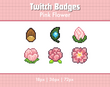 A set of 6 pixel art sub badges for Twitch streamers, pink flower themed.