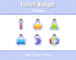 A set of 6 pixel art sub badges for Twitch streamers, potion themed.