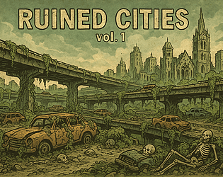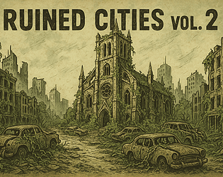 Post-apocalypse themed ruined city maps, including 10 large story maps with an extra large Cathedral map.