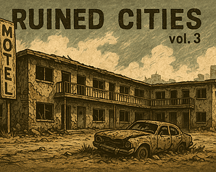 Post-apocalypse themed city maps, including 10 small encounter - story maps with a large Motel map.