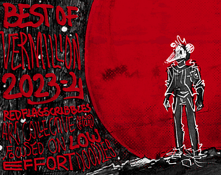 Collection of doodles by mod Vermillion from the RedFlagScribbles Project (2023/24) in a form of a small zine