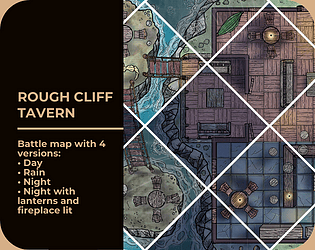 A TTRPG battle map of a sailors' tavern on the cliffs overlooking the sea.
