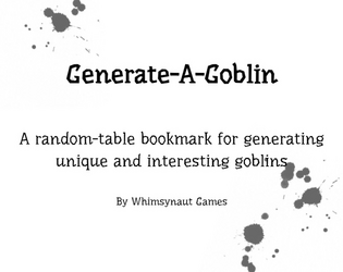 Need some unique goblins on the fly? Keep this bookmark and a d8 handy to generate over 4000 possoble gobbos!