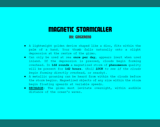 A magnetized storm summoning gizmo for use in Islands of Weirdhope