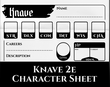 A simple and fun character sheet for Knave second edition. In a folio and single page format.