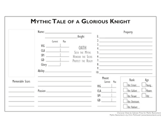 unofficial modified character sheet for Mythic Bastionland