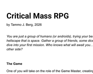 An ultra-light RPG system for 2+ players requiring no cards or dice - just some friends and a little imagination.