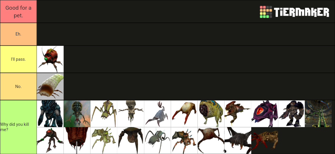 Same but headcrabs are good for pets and chumtoads example is lamarr