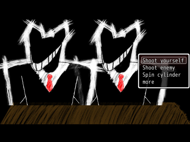 You don't want to shoot the opponent because then you have to shoot yourself, but you don't wanna shoot yourself, because you might give the opponent an advantage in getting the live round. But lets say the gun passes to you. Do you spin it or shoot yourself, either option could kill you on the spot. This is great, To be honest, I might genuinely add this in the 2nd beta.