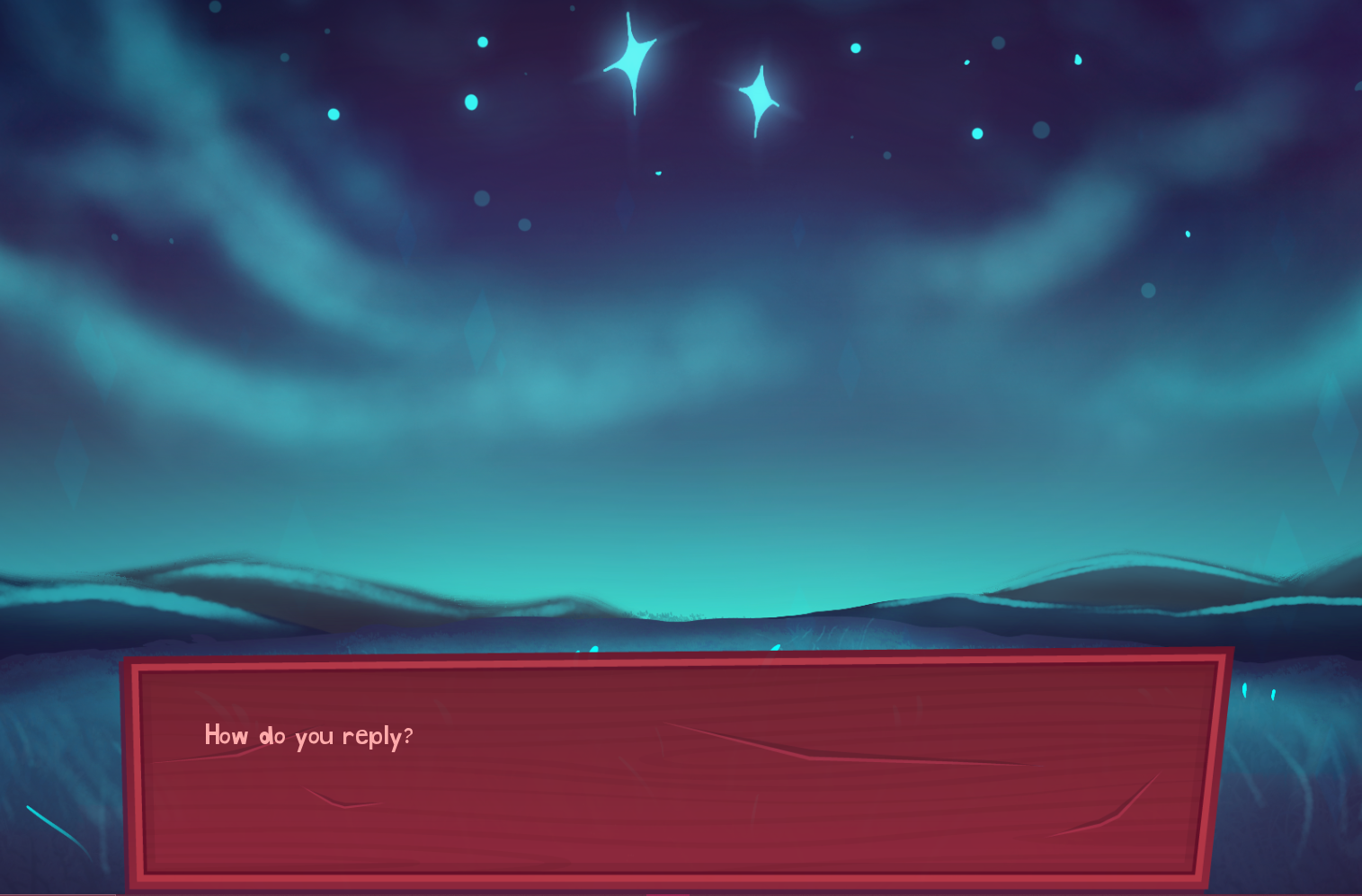 The audio spells out "STARSABOVE" and you get a notification on the top left corner saying that you feel the word "STARGAZING" lingering in your mind after the scene.