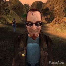 The postal dude but happy
