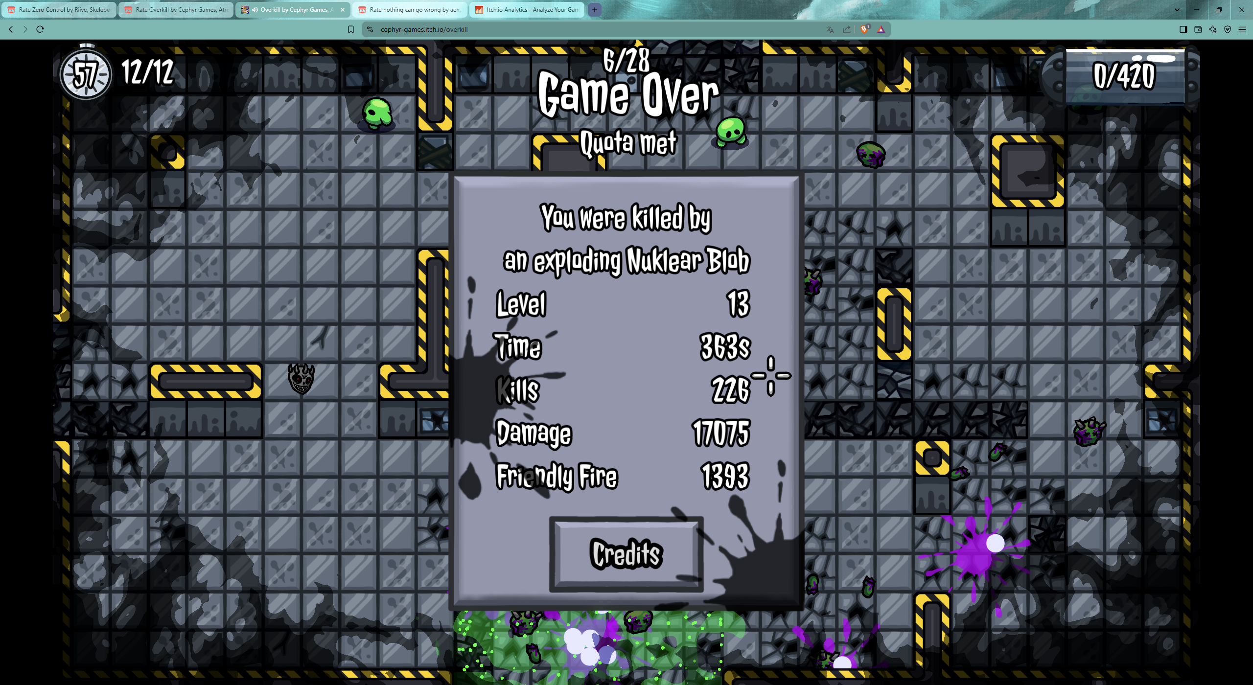 Just died at the last level ( to the explosive guy ).Satisfying movement and firing mechanics. Very polished art. And a balanced game with great level design. Absolutely loved your game it felt very professional.