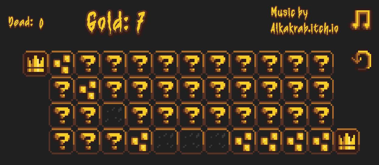 Cool game. I really liked the art style! Is the goal to get as much gold as possible or to reach the kingdom on the right? Because if it is the latter, then I got a pretty lucky run...