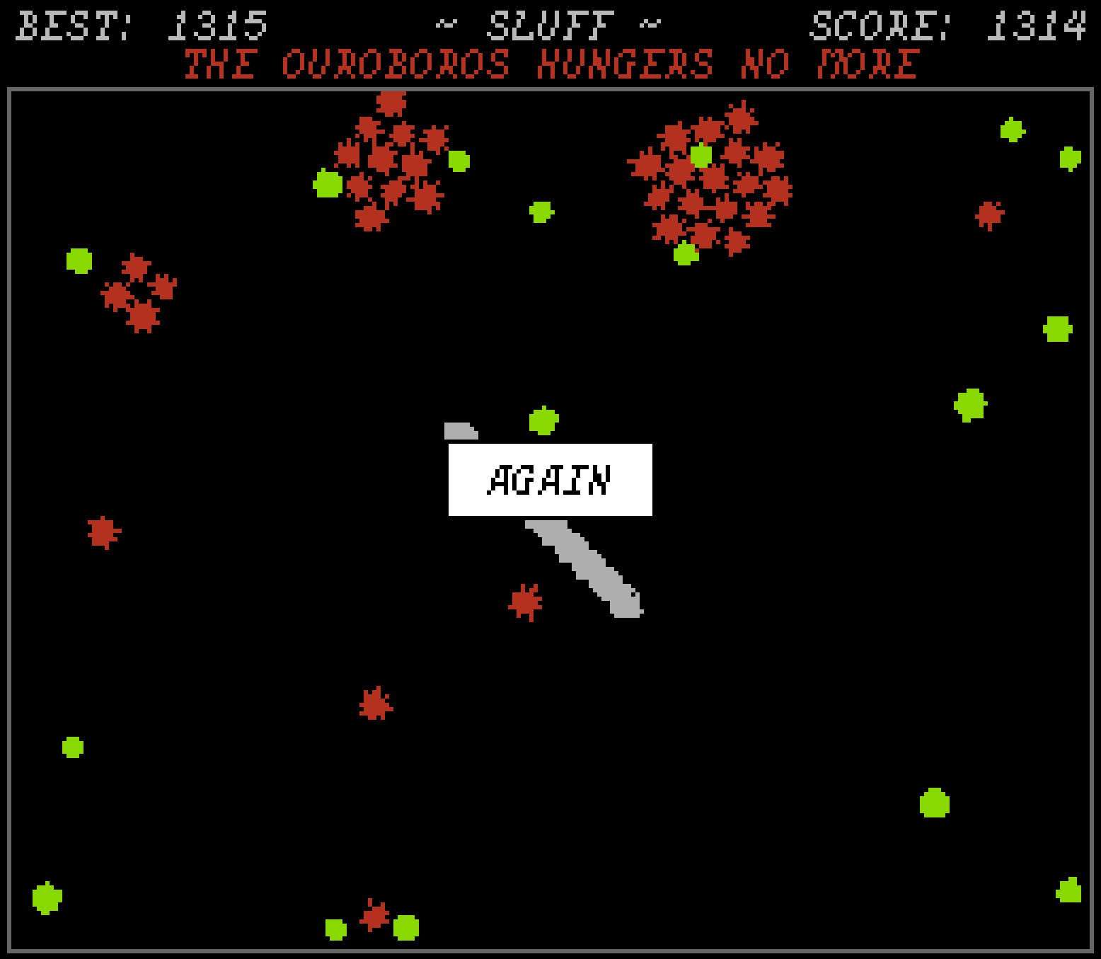like I mentioned when we talked earlier, I wanted to keep things vague to encourage exploration, and I thought “ouroboros” was enough of a hint for the circling … but I now realize it’s too obscure for a jam game like this. I’ve updated the game page to be more explicit about the circling, and I’ll add a GIF to show it off tomorrow. thanks again!!
