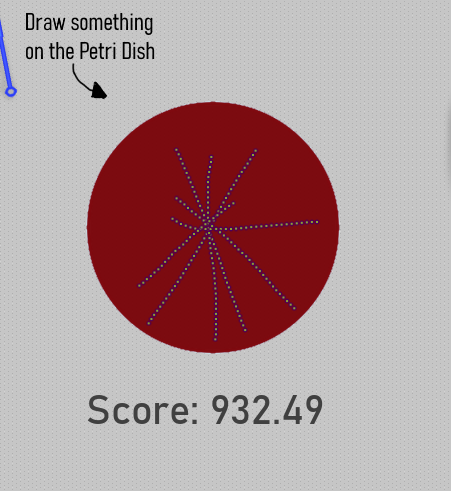 I filled in the entire petri dish, the game froze for 5 mins and then I got a 0 score :P