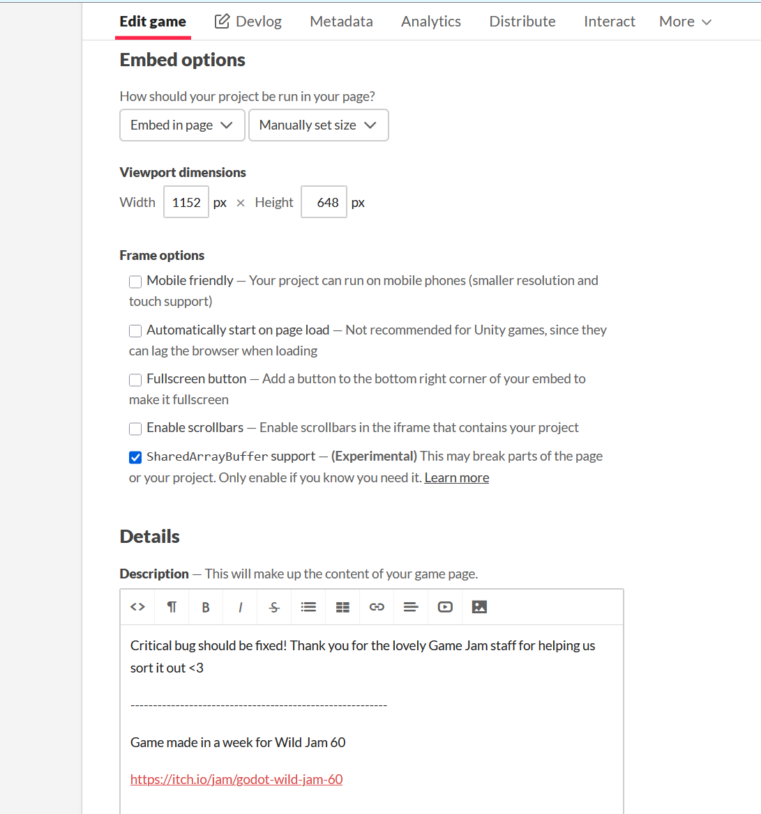 And click the SharedArrayBuffer support at the bottom
