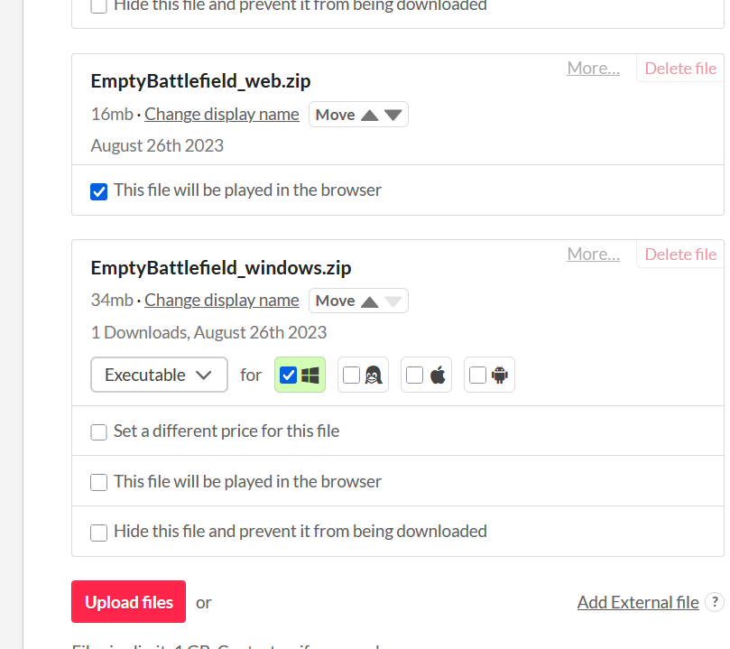 Upload the file to itch.io
