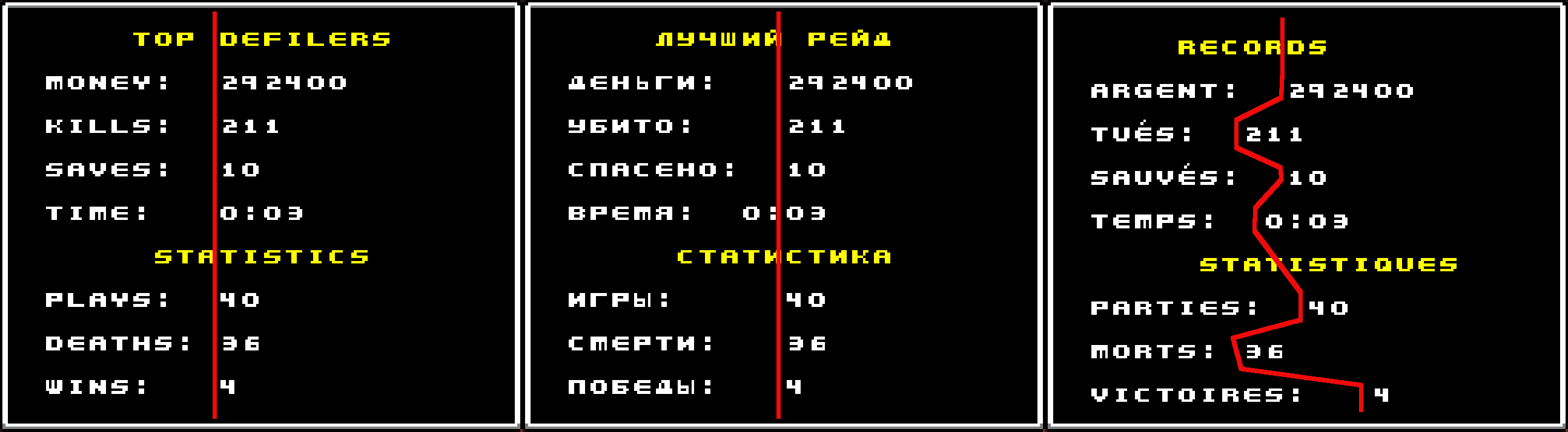 - Why do we have sometimes multiple instances of the same translation, like the money/kills etc., wouldn't it be easier, if one instance is enough?