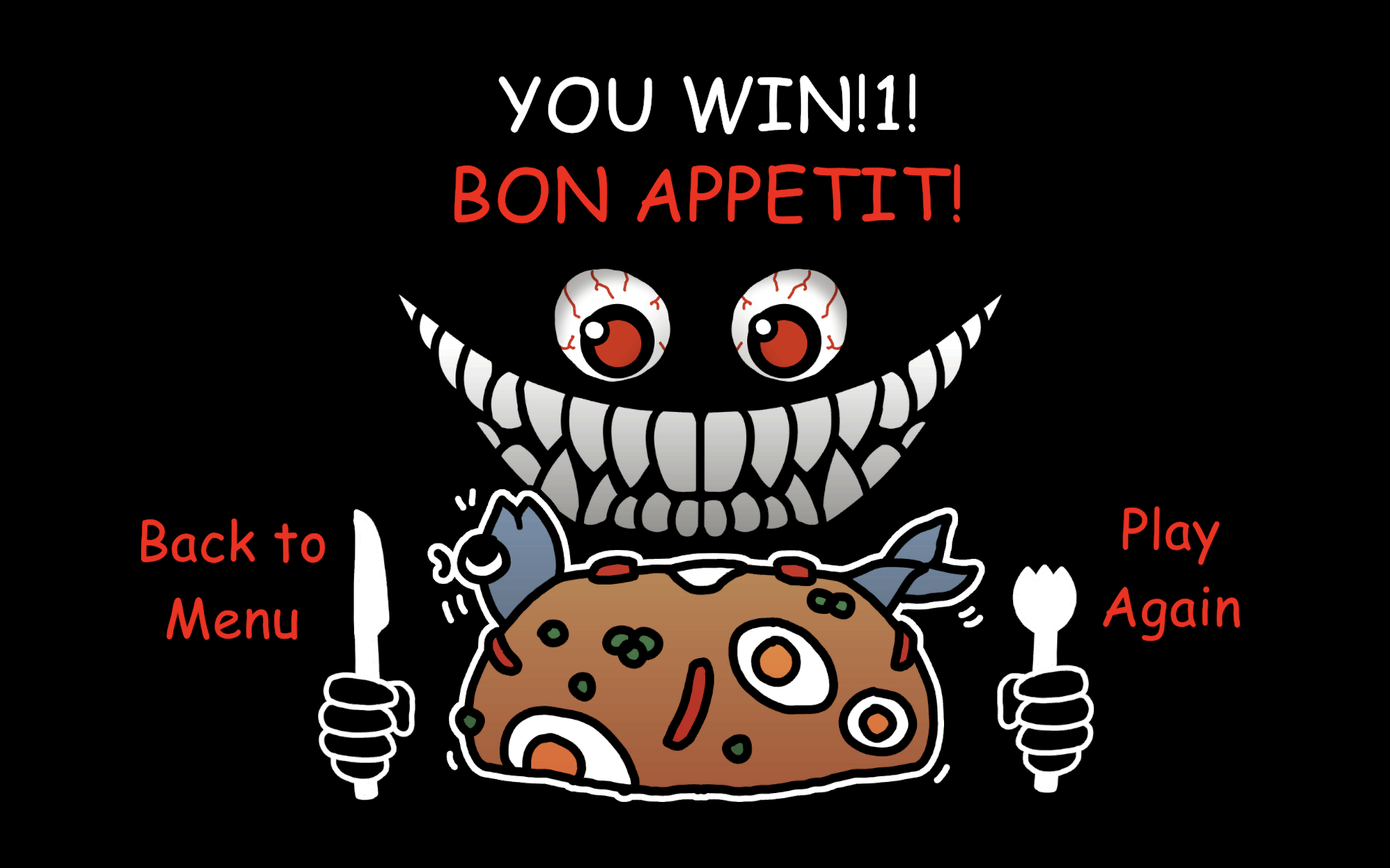 Well executed game, and great way to incorporate the theme! Nice work on the art too, the cute food is such a joy to chomp on.