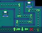 I really like the concept you have here, although I wish there were some systems in place to encourage making your path more efficient. Maybe add a preparation period and limited arrows/deletions and this could be a really cool puzzle game if scaled up with some more mechanics. Watching everyone go where they're supposed to is satisfying, although it can get pretty tiring if you're just sitting there for 2 minutes waiting for the level to finish without any further interaction, this is especially the case on the first 2 levels. Overall this is a great entry, good job!