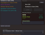Результат взаимодействия даёт идентификатор и слова-ассоциации - на них игрок может придумать интертретацию (что конкретно произошло в мире игры). Интерпретацию желательно попытаться оформить как новую сущность в сюжете, тогда можно её сохранить, она получит идентификатор и сможет взаимодействовать с прочими сущностями.