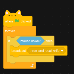 if mouse down then ( the code for throwing the knife and recalling it) just type that in the game code