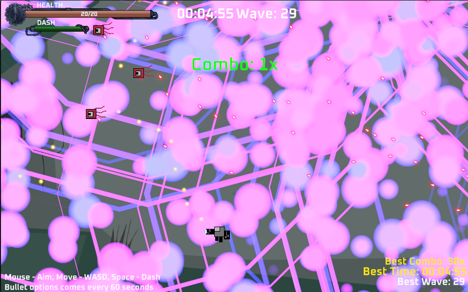 I also discovered a bit of a bug when you get the gravity based bullets, the screen ends up being filled with effects that makes it pretty difficult to play.