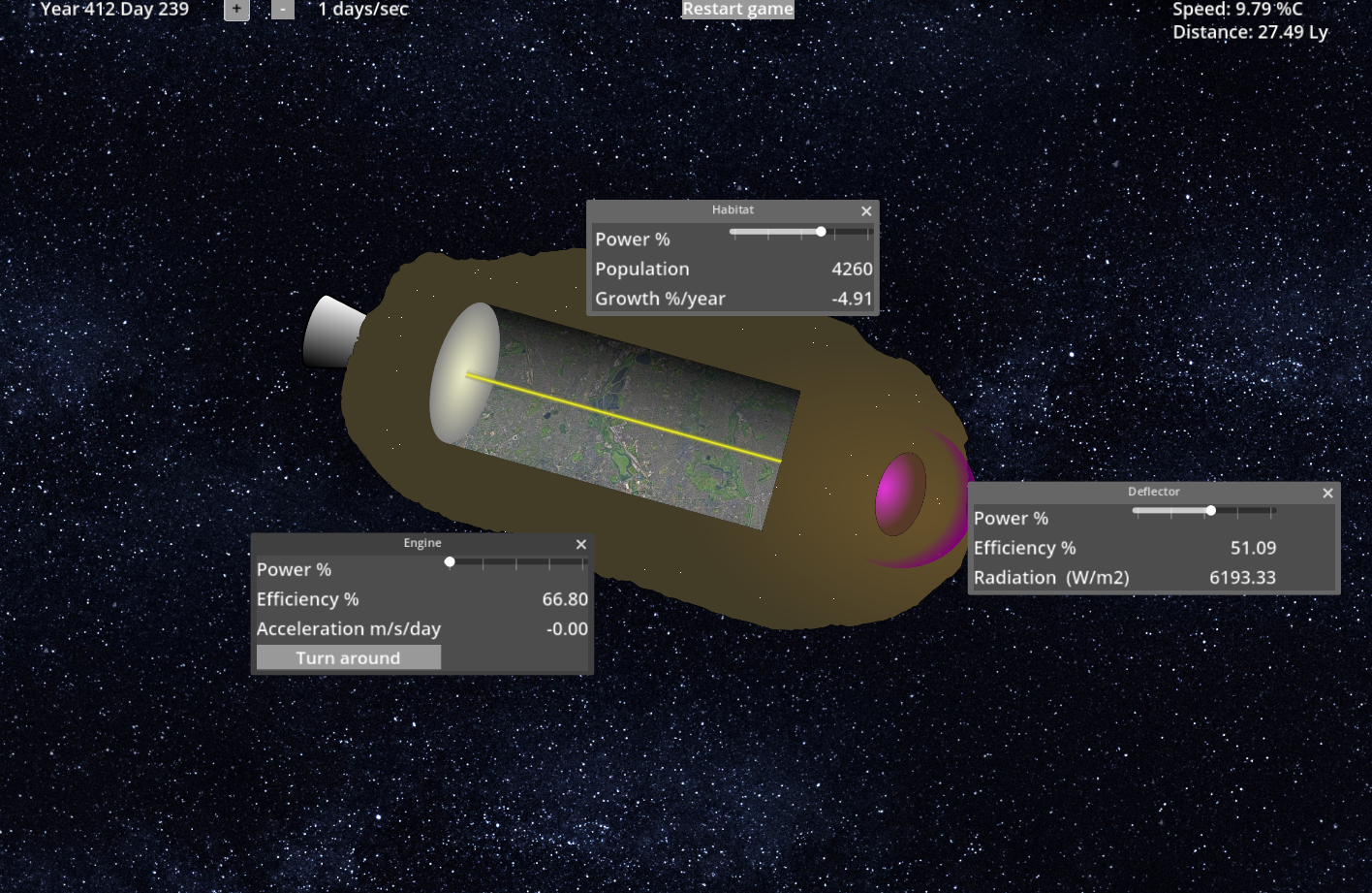 This is one of the most unique concepts I've seen in game jams so far. It's a great idea and fits perfectly with the theme of the jam. The windows being draggable and being able to control the speed of time are great additions. I think I only encountered a small bug (or maybe I didn't fully understand it), after the halfway notification came and I used the Turn Around button, the Engine's slider broke and stopped responding to my drags (also speed and distance meters are stuck). I've added a picture of it. Other than that, it's a great idea and a great game, congratulations!