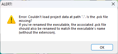 okay so you need to download both the exe and the pck files put them in the same folder and make sure they have the same name, then run the exe