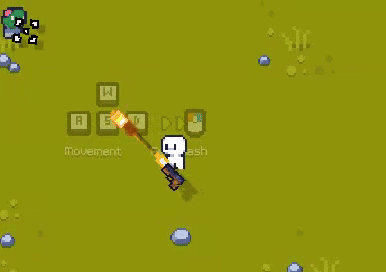 I’m not entirely sure what you mean about making the guns aim towards the mouse. Currently the bullets shoot towards the mouse, albeit with varying accuracy. It’s a bit of a cheat, since the guns themselves will typically be pointing in a slightly different direction (but the aiming cone is narrow enough that bullets don’t exit the barrel at some bizarre angle). Do you mean you want the entire ring of guns to aim towards the mouse, or just the ones lined up to fire, or just slightly greater accuracy in general?