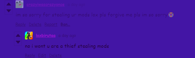 stole my mods and claim as him and try to convince ppl online that I stole but this drama just stopped