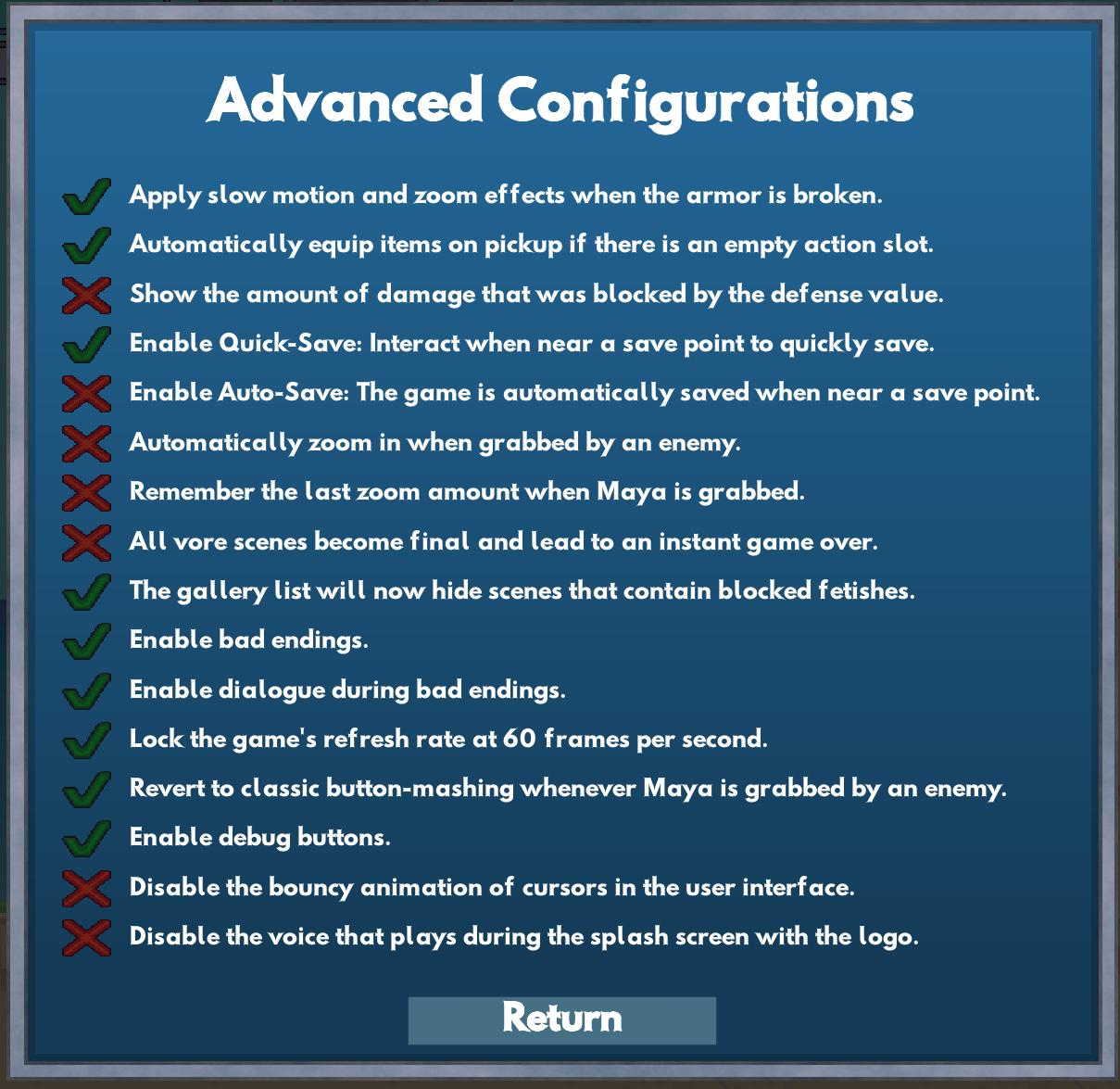 Love the game btw! I've posted the three different scenarios below from a clean download and save as well as the config screen