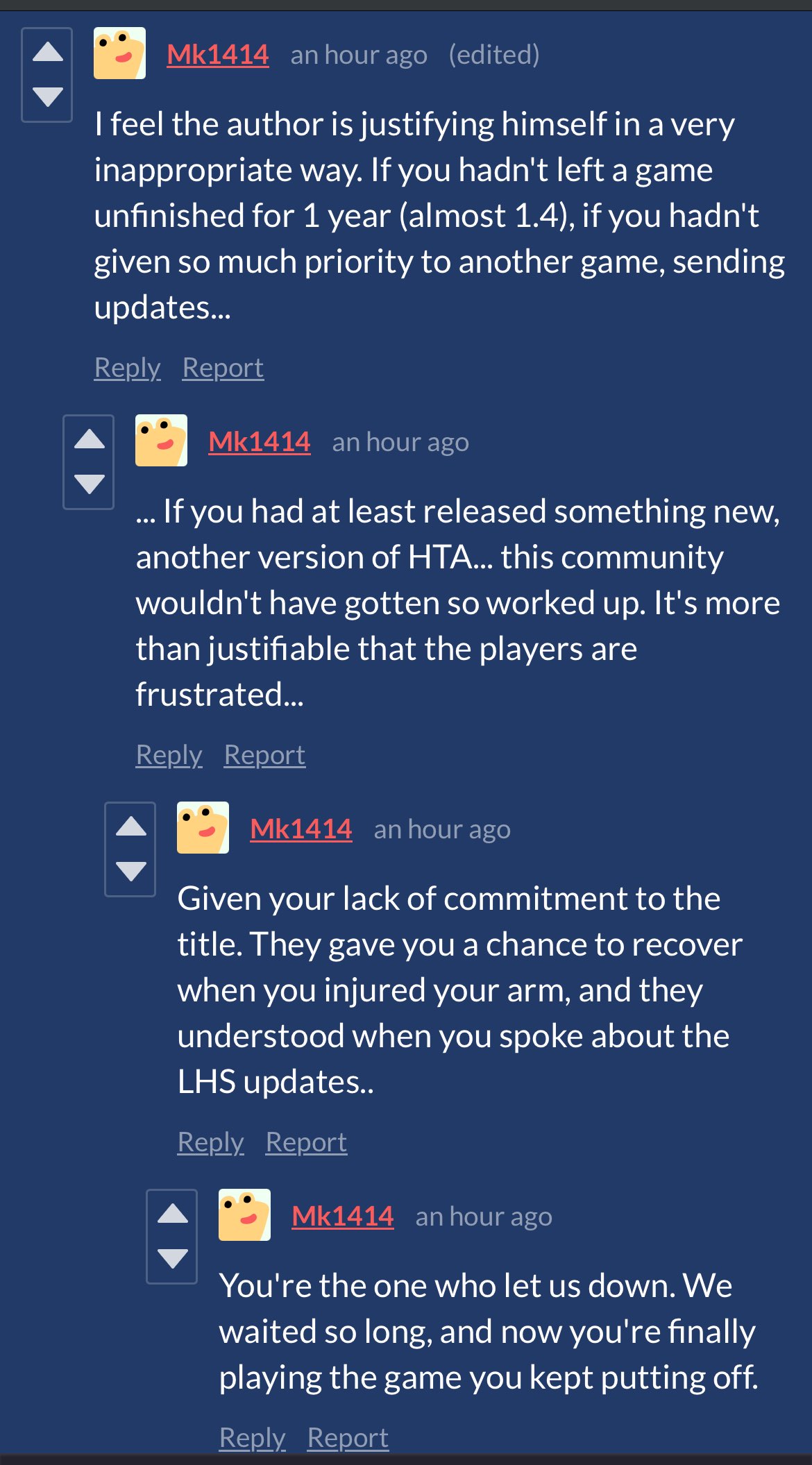 Lags (old name): Please finish the game. We'll donate whatever you want, but finish that game now. It's been my favorite, even more than Parasity in City.