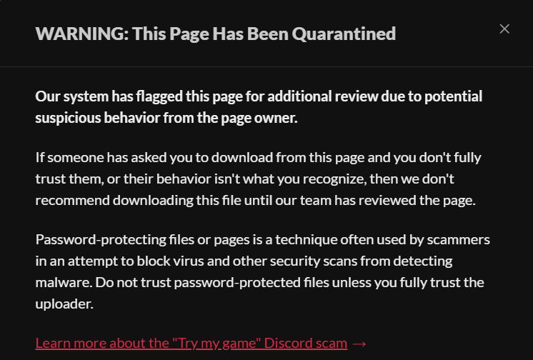 I wanted to check it out, but I get this warning from Itch.io. I hope you understand that I don't like to take risks. I don't think you have any bad intentions, but you have to be careful on the internet lol