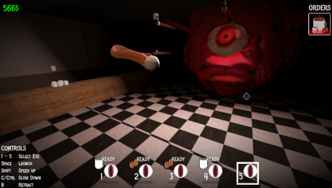 Honestly, I didn't want to stop. The attention to detail is insane. Your team took an idea and fully fleshed it out. It feels way out of scope for just the two day jam. Fantastic job. I loved the flow. Now, I don't even know if this is the right direction for this game, but I try to make it a habit to give some level of criticism; I wonder if a speed scaling factor could be applied to the whole game as time goes on. For example, eyeball speed increases and so does customer frequency or maybe order timers decrease. A little bit more chaos may go a long way here.