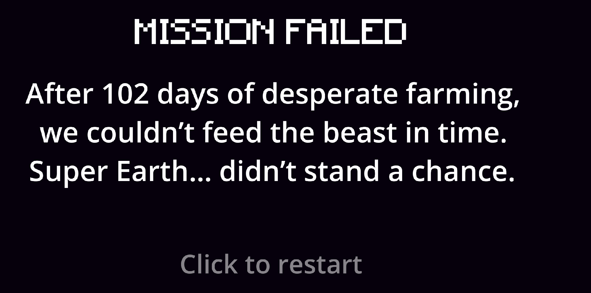 Make, I was really thrilled to play your creation. Good Job. At first I did not know what is going on, but then I understood and was amazed with this game play. Spend like 5 minutes trying to save the Earth, but with little luck. This game is skill based and super engaging.
