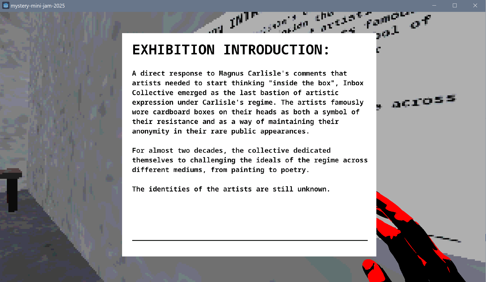 This note blocked the screen and I had to restart the game. The art style isn’t really my thing, but I did like the hand animation — it was quite charming.