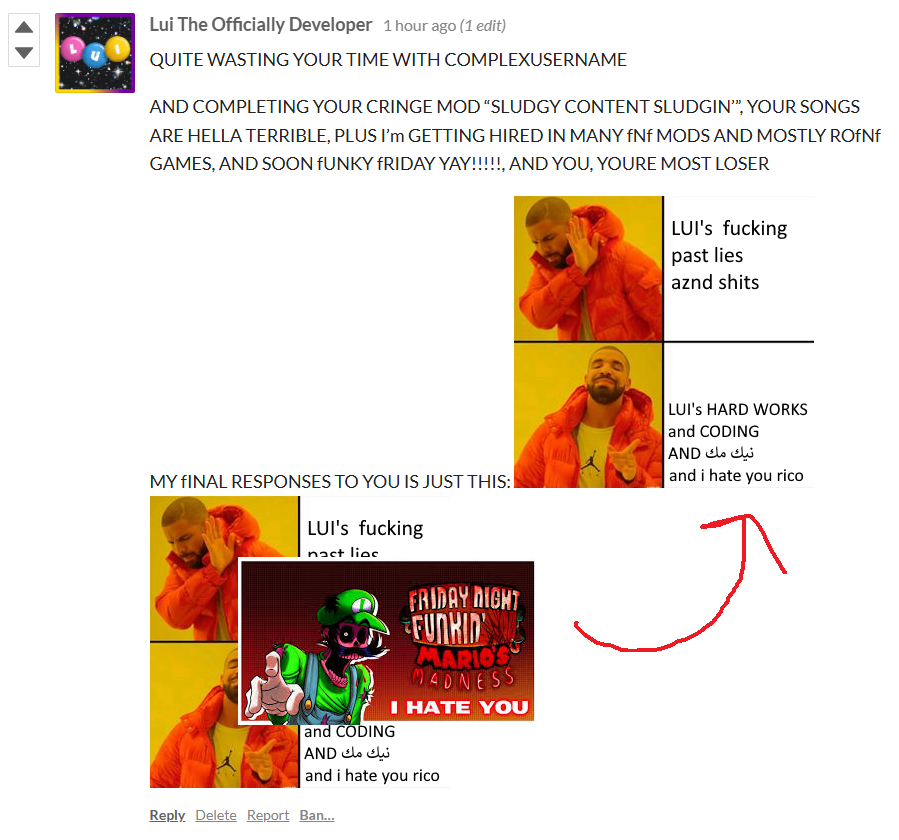 AND COMPLETING YOUR CRINGE MOD “SLUDGY CONTENT SLUDGIN’”, YOUR SONGS ARE HELLA TERRIBLE, PLUS I’m GETTING HIRED IN MANY fNf MODS AND MOSTLY ROfNf GAMES, AND SOON fUNKY fRIDAY YAY!!!!!, AND YOU, YOURE MOST LOSER