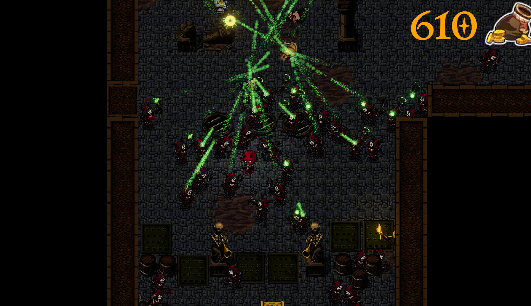 Had a blast while playing this game! Simple yet effective gameplay loop, and its so satisfying seeing my minions essentially having a war with the enemies. My main strategy was having to kite the enemies while my mages shoot at the back, once the wave was over i spawned even more mages, rinse and repeat until i couldnt spawn anything lmao. Also im not sure if im too overpowered or theres lack of progressive difficulty, but the enemies were really easy to kill at the later stages. Also i think it would be nice to have the pillars in the room to stop projectiles and have collision. Other than that, super fun game! Awesome visuals as well