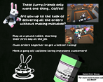 That was a very fun and chaotic game! It's definitely made for controller as I tried playing on keyboard but had difficulties getting the inputs correctly but when I switched to controller, everything went smoothly... Until I got beaten up haha! Overall, a very fun game that throws you right into what it's like to have to deliver coffee to sleep deprived bunnies!