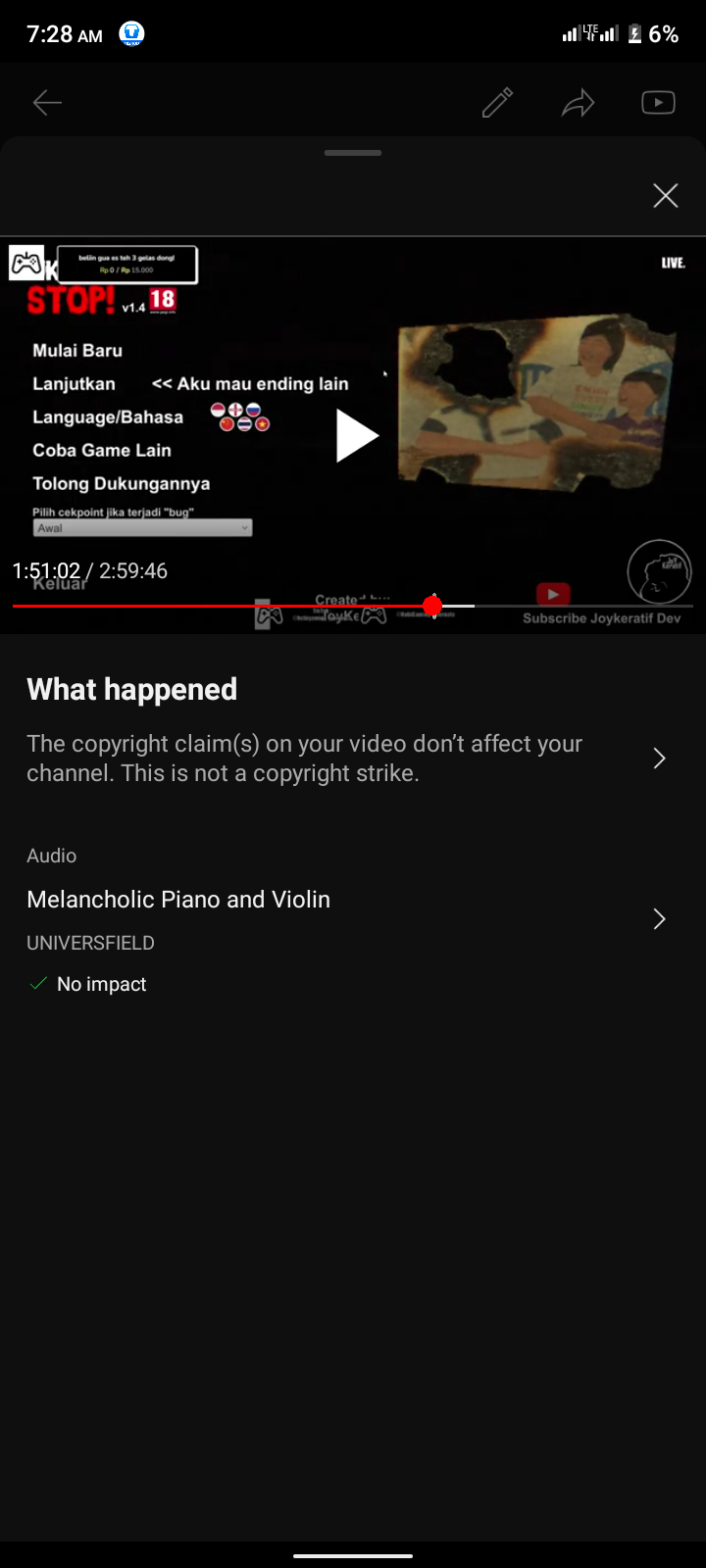 Btw, yg saya sematkan itu beneran channel saya. Kalo mo liat saya bermain, silahkan ditonton. Cmn, saya mo bertanya terkait copyright mumpung pembahasan dari luar lagi rame2 ny. Ini aransemen piano setelah dapet ending 6 kenapa jd copyright ya? Apakah musik yg anda pakai benar2 free copyright?