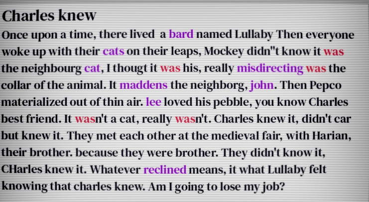 Super creative concept for a game! I love word games, so this was right up my alley. I was initially frozen on what to do but with each try, I warmed up and got better at improvising the story and fitting in the wacky editor suggestions.