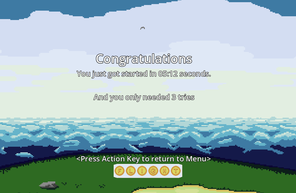 I went from very confused to, "Ooooohhhh," lol. You're not going to be an expert at flying (or game dev) right away, it takes time. Good message, great game ദ്ദി ˉ͈̀꒳ˉ͈́ )✧