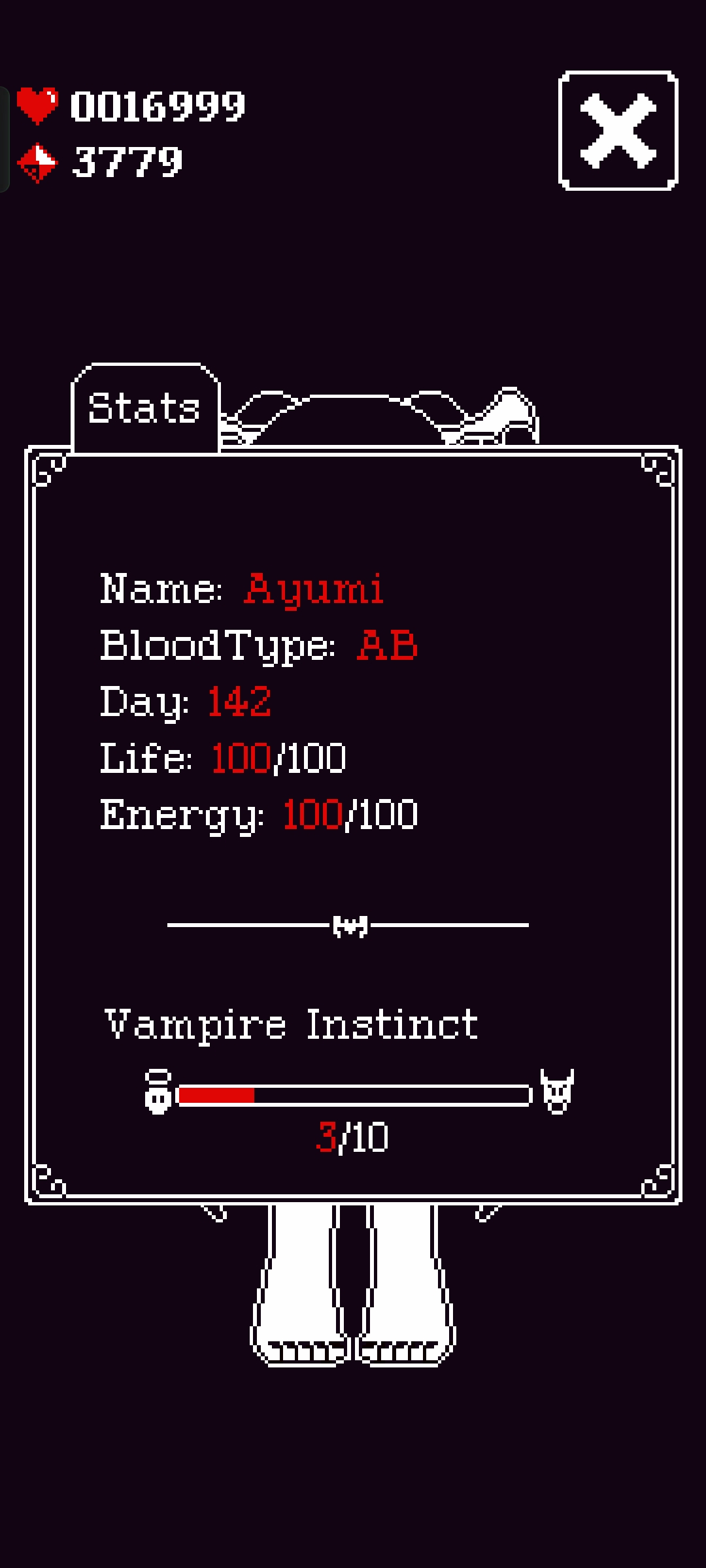 - «Freeze Vampire» — A Feature that allows the Player to “Freeze” his Vampire for an indefinite period. Based on the design and nature of the game, I reasonably believe that this feature should at least be present. (For example, if the Player, say, gives the smartphone for repair or does not have access to the smartphone for a long time);