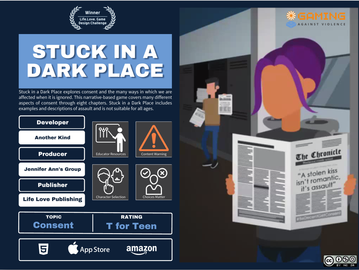 "This narrative-based game covers many different aspects of consent through eight chapters. [...] Stuck in a Dark Place includes discussions of non-consensual sexual activity including assaults."
