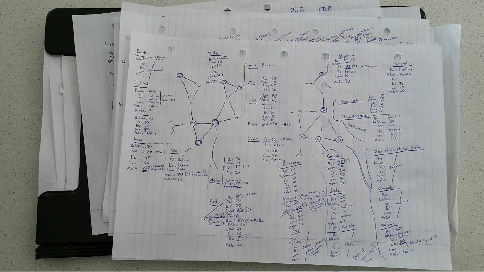 I have most combinations of people and positions I think. A few outstanding gaps, and a really big question mark over what it takes to get Khdarr into a Law position.