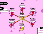 Great game and idea! I don't know if you thought about this explicitly during when designing the game, but if you enforce that every character has only two hands, then the resulting graph from connections must always form a loop (as it would be a 2-regular graph). This is a very clever mathematical application of the theme. Unfortunately, this is not true if people can have >2 hands (which your game allows).